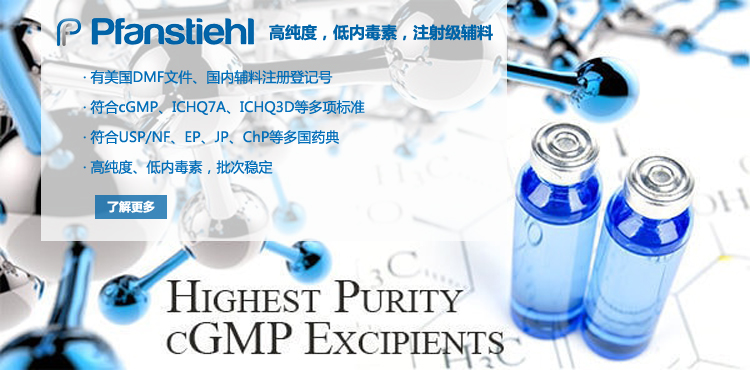 “熱烈祝賀Pfanstiehl的注射級甘氨酸Glycine(G-140)喜獲CDE登記號F20250000403, 這是Pfanstiehl產品獲得的第18個CDE登記號!”甘氨酸在醫藥輔料制劑中應用廣泛,, 可作為緩沖劑,增溶劑,穩定劑等,具有諸多優勢。Pfanstiehl秉承一貫高品質理念,為滿足全球生物制藥行業對于高品質甘氨酸的需求,隆重推出的注射級甘氨酸Glycine (G-140), 具有超高純度,超低內毒素,超低金屬殘留的特點,單獨檢測29種金屬離子,并且新增DNA,RNA,DNA酶,RNA酶和脂肪酶,亞硝酸鹽等多項質量指標的檢測,符合多國藥典規定(USP, EP, BP, JPE, ChP),可用于生物治療性藥物和疫苗的生產。產品信息:· 產品名稱:Glycine, High Purity, Low Endotoxin, Low Metals, USP, EP, BP, JPE, ChP (G-140)· 中文名稱:甘氨酸· 分子式:C2H5NO2· 分子量:75.07 g / mol· CAS號:56-40-6· 產品貨號:G-140產品特點: · 超高純度,超低內毒素,超低微生物含量,超低金屬雜質殘留· 質量指標新增DNA,RNA,DNA酶,RNA酶,脂肪酶和亞硝酸鹽檢測· 符合多國藥典:USP, EP, BP, JPE, ChP· 符合ICH Q3D標準· 符合GMP標準· 已獲DMF和CDE登記號 產品應用:· 緩沖劑· 穩定劑· 增溶劑如果您對Pfanstiehl注射級別Glycine G-140感興趣,歡迎聯系Pfanstiehl 中國區代理商北京西美杰科技有限公司獲得如下詳細的產品概況說明文件和測試樣品。Pfanstiehl Inc.最新產品系列如下,歡迎聯系北京西美杰科技有限公司獲取100g裝免費樣品。北京西美杰科技有限公司為Pfanstiehl中國代理,為客戶提供完善的技術支持與售后服務。歡迎撥打西美杰客服電話400-050-4006或者登陸網站www_xmjsci_com.ezaspi.pro了解更多信息。 更多>西美杰介紹